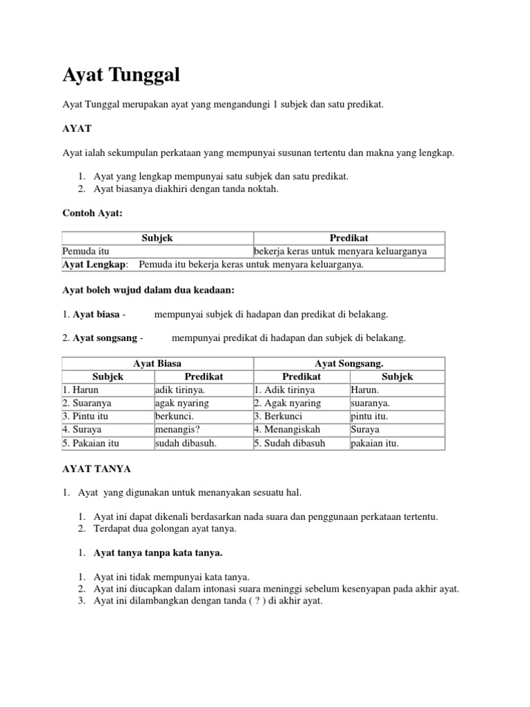 Sudahkah kalian membiasakan membaca al-quran setiap hari. AYAT Ayat ialah sekumpulan perkataan yang mempunyai susunan tertentu dan makna yang lengkap. Ubjek Predikat Pemuda itu bekerja keras untuk menyara keluarganya Ayat.